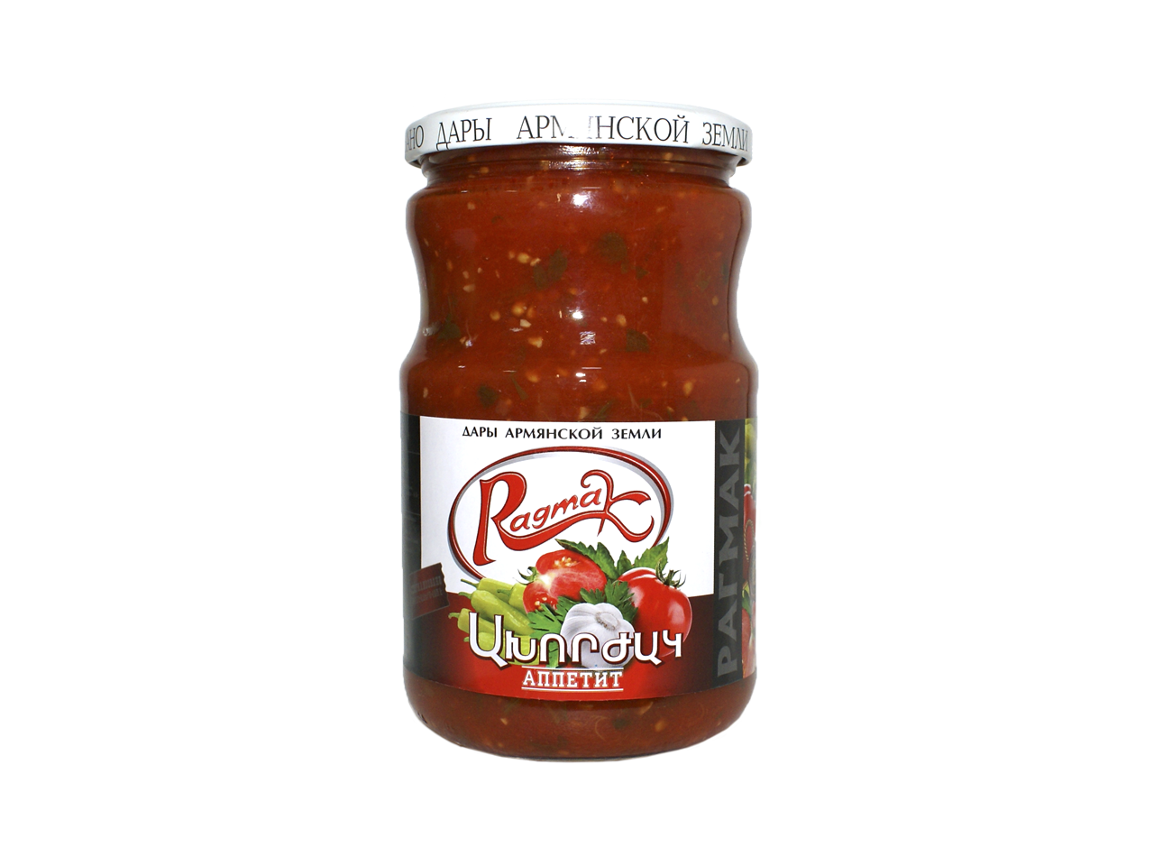 Լոլիկ, ծիծակ, սխտոր, շաքար, մաղադանոս, բուսական յուղ, աղ